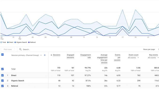 Asennamme sivustollesi Google Analytics 4 -seurannan, joka kertoo kävijämäärät, käyttäjien käyttäytymisen ja tärkeimmät liikenteen lähteet. Näiden tietojen avulla voidaan kehittää sivuston sisältöä ja rakennetta jatkuvasti paremmaksi.
