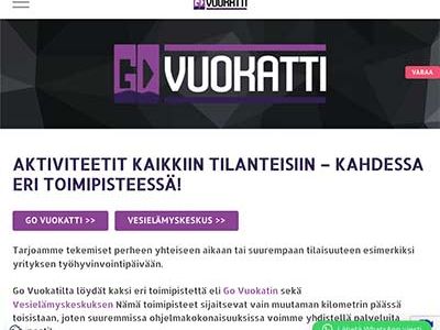 Olemme toteuttaneet useita kotisivuja Vuokatin, Suomussalmen ja Hossan alueilla toimiville yrityksille ja yhdistyksille. Vuokatti tunnetaan monipuolisista matkailu- ja urheilupalveluista, Hossa kansallispuistosta ja luontomatkailusta, sekä Suomussalmi vireästä paikallisesta elinkeinosta. Kotisivumme tukevat niin matkailuyritysten kansainvälistä näkyvyyttä kuin paikallisten palveluiden saavutettavuutta, aina moderneina, hakukoneoptimoituina ja mobiiliystävällisinä.