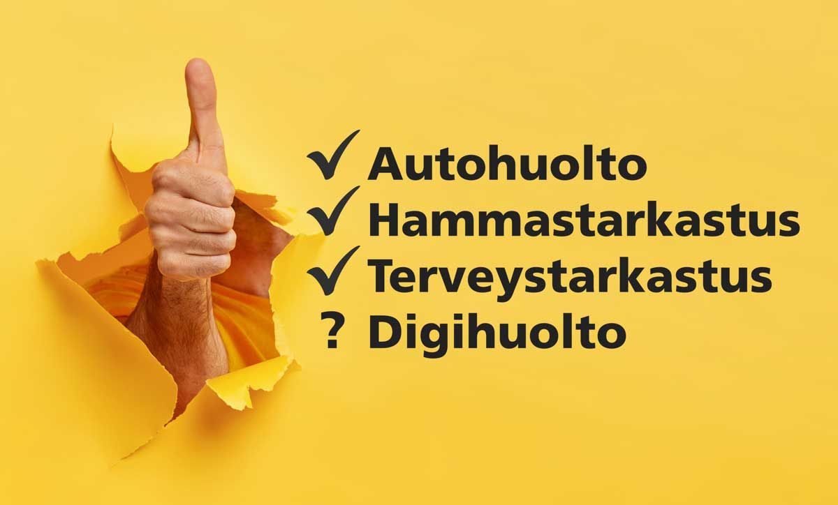 Autohuolto, hammastarkastus, terveystarkastus, digihuolto?